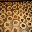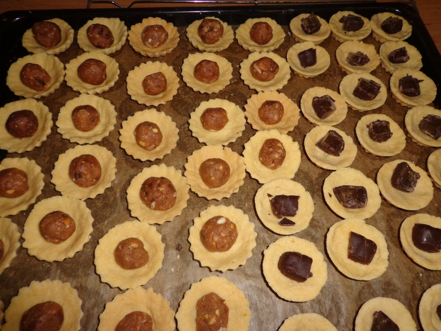 Z mouky, cukru, měkkého tuku a žloutku vypracujeme těsto a dáme ho na 30 min. do lednice. Uděláme malé kuličky a těsto vtlačujeme do formiček a ve středu necháme důlek. Formičky nevymazávám a šli krásně za tepla vyndat. Plech dáme do trouby a upečeme do růžová.
