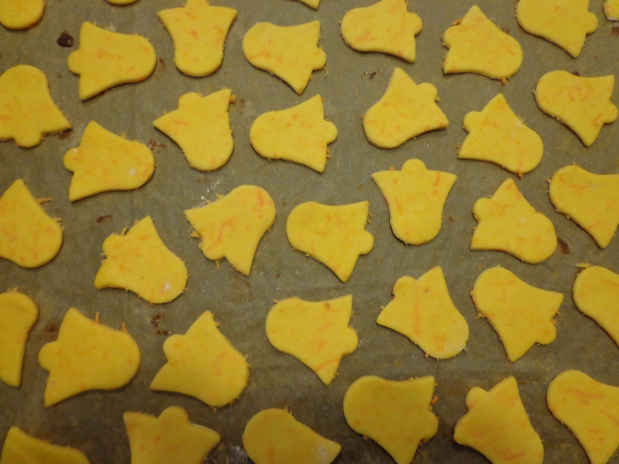 Mrkev hodíme do robotu a nasekáme na drobno, případně nastrouháme na jemno. Všechny suroviny smícháme a vypracujeme těsto, které necháme v lednici odležet. Vyválíme ( dávám nahoru potr.folii )cca 3–4 mm tlustý plát a vykrajujeme. Pečeme v troubě na pečícím papíru na 180 stupňů asi 15 minut. Hotové, ještě horké obalujeme ve směsi moučkového a vanilkového