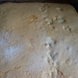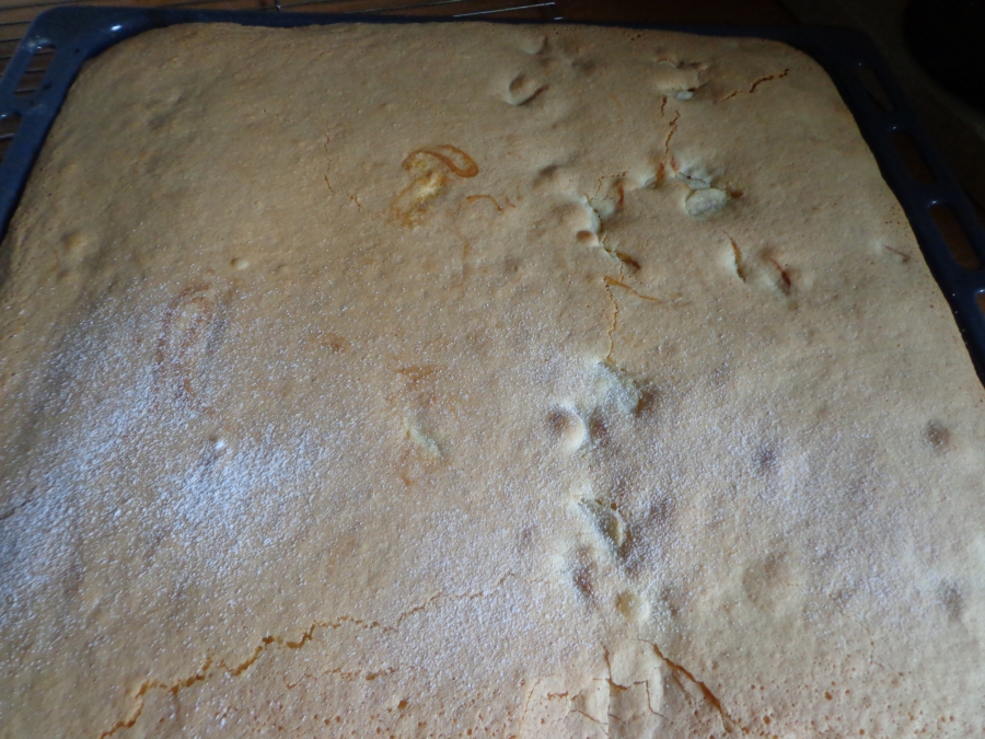 1. těsto: všechny přísady dáme do mísy a smícháme, nejlépe ručně. Vznikne tužší těsto, které namačkáme na vymazaný a vysypaný plech s vyšším okrajem.