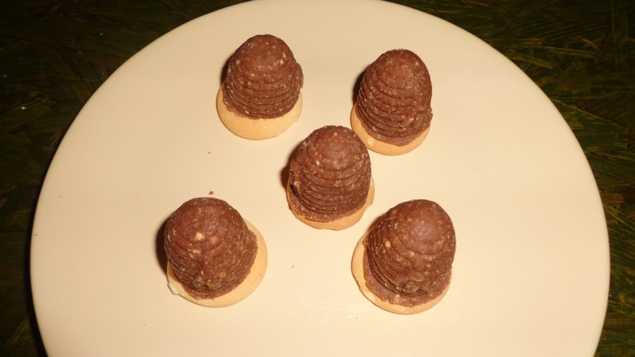 Suroviny spojíme dohromady v těsto které necháme odležet v chladu. Plníme formičky a doprostřed uděláme důlek kam dáme náplň a zakryjeme piškotem.Můžeme máčet v čokoládě.